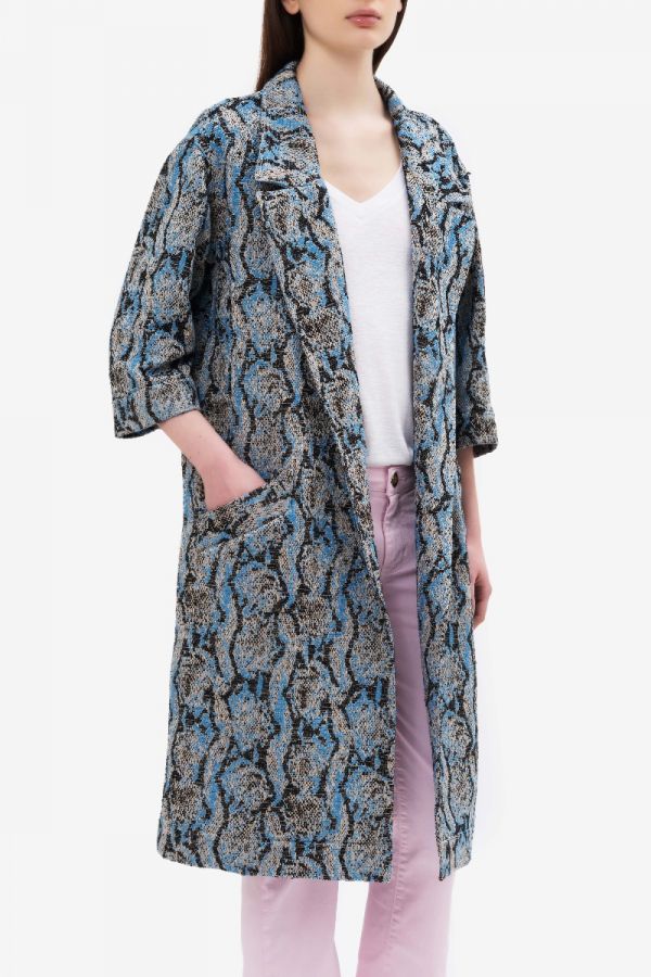 Long rope coat in animal print and 3/4 sleeves
