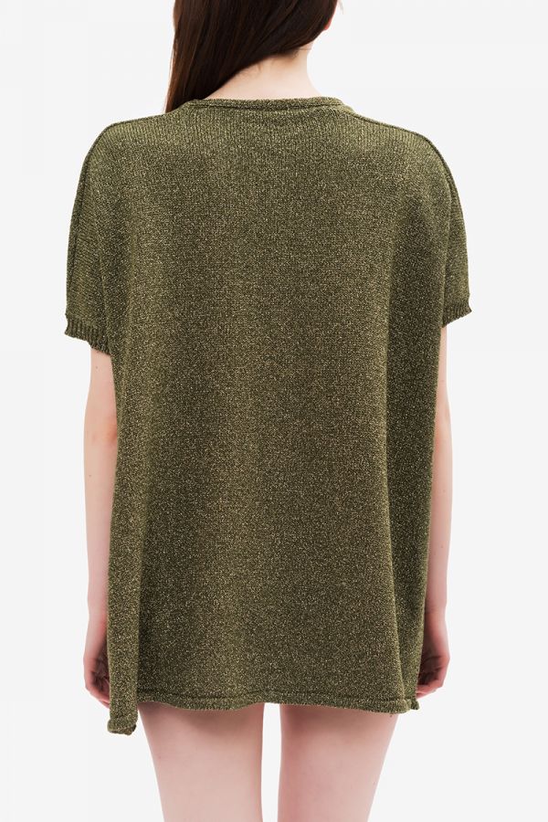 Loose cut cardigan in shiny lurex thread and 3/4 long sleeve