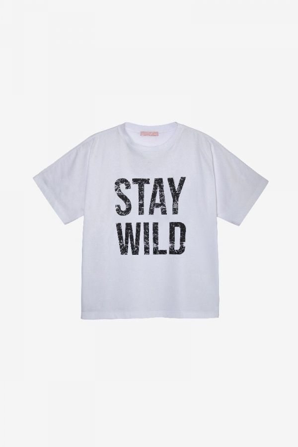 Short sleeve cotton jersey Tshirt with "regular fit" fit and "Stay Wild" stone washed print with deteriorated effect