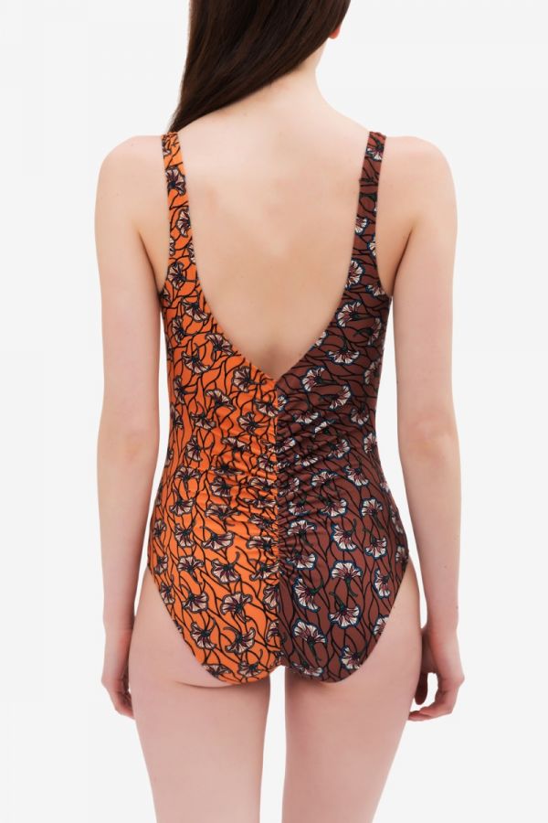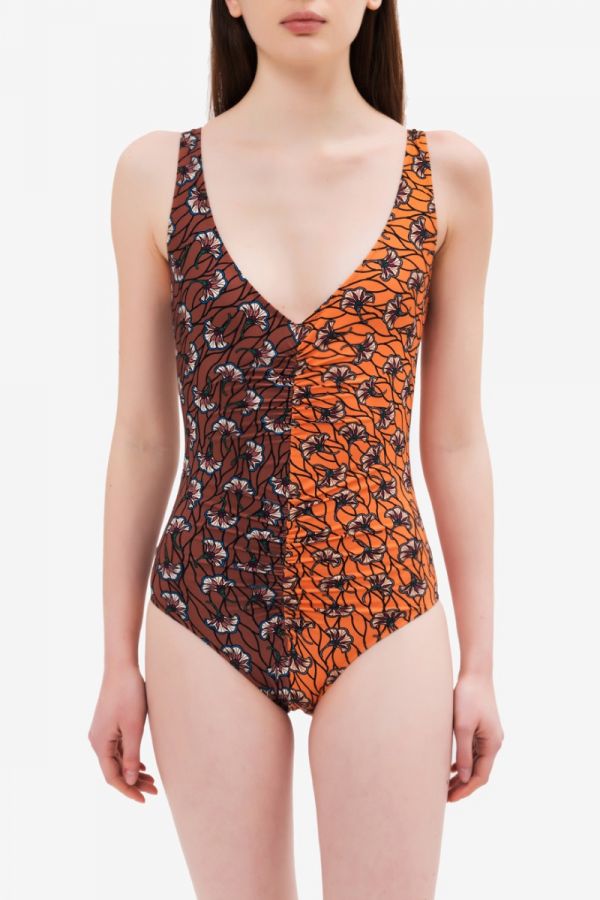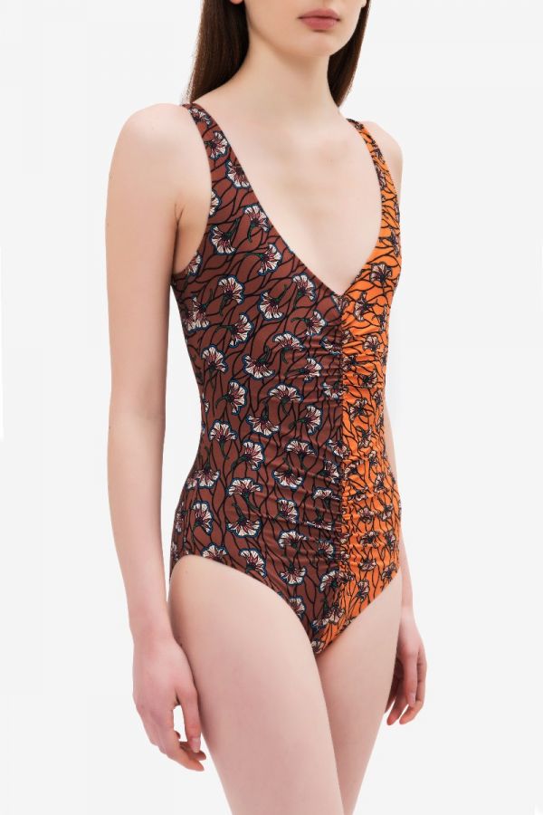 two tone swimsuit in floral pattern